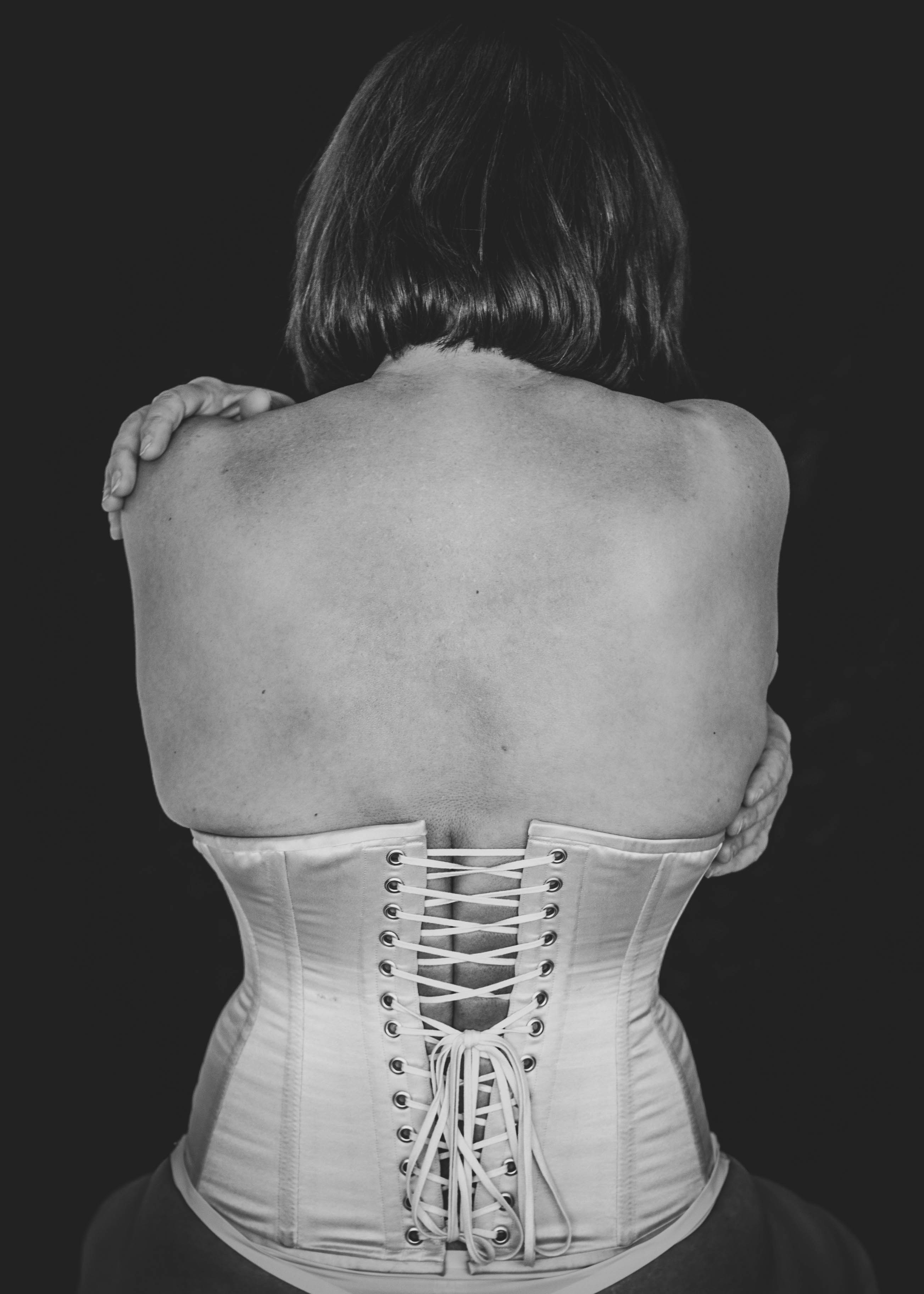 Examples of socially engaged projects: The brave women you see in these photos are to me, radically beautiful. The first is in constant pain and only feels relief when being held together by tight clothing. The second are woman who are street sex workers using methadone and recovering from heroine addiction – they say about their picture, ‘We are not lesbian, we are not gay, we are just in love’. The third, is a woman wearing a tag, she wanted to express to her children not to follow in her footsteps.